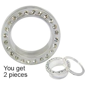 UV size 20MM Transparent Flesh Tunnel with Clear crystals - you get ONE PAIR - we use Sawovski crystals - bling bling!! - different sizes available - choose from the drop down menu: GlitZ JewelZ: Jewelry