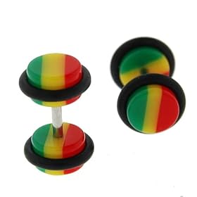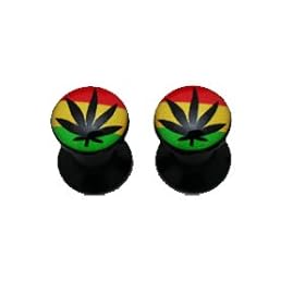 Rastafarian Colors Marijuana Leaf Ear Plug 4mm (6G) - Fashion Ear Gauge (1 Pair): Jewelry