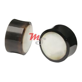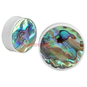 Abalone & Horn Organic Plugs Pair 6mm 2g 2 gauge Exotic: Jewelry