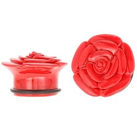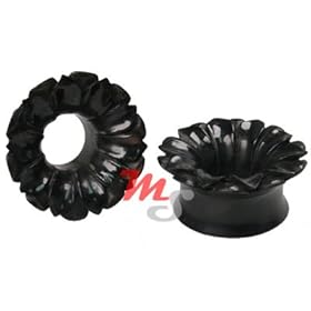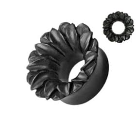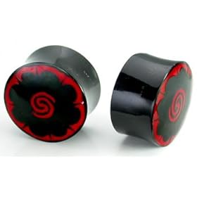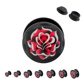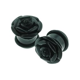 Black Acrylic Single Flare Plugs with Rose Design - 7/16 Inch (11mm) - Sold as a Pair: Jewelry