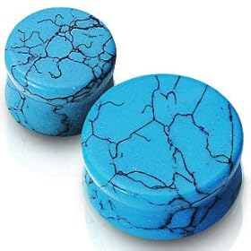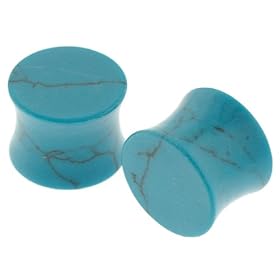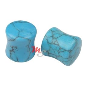 Pair of 00g 10mm Turquoise Semi Precious Stone Ear Plugs Gauges - Free Shipping USA: Jewelry