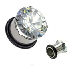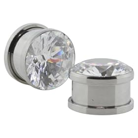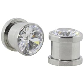 Steel Cz Screw on Tunnels - 00g - 10mm - Sold As a Pair: Jewelry