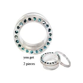 UV size 20MM Transparent Flesh Tunnel with Aquamarine Crystals - you get ONE PAIR - we use Sawovski crystals - bling bling!! - different sizes available - choose from the drop down menu: GlitZ JewelZ: Jewelry