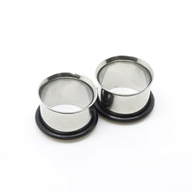 316L Surgical Stainless Steel Flathead Plugs with 1 O-Ring - 12G (2mm) - Sold as a Pair: Jewelry
