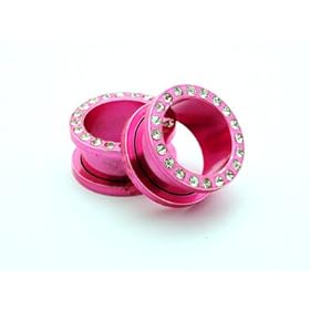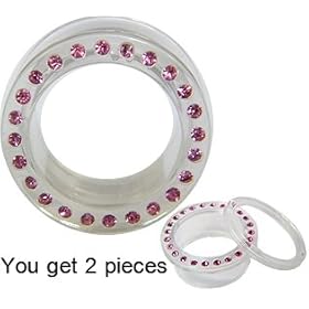 UV size 20MM Transparent Flesh Tunnel with Pink Sapphire Crystals - you get ONE PAIR - we use Sawovski crystals - bling bling!! - different sizes available - choose from the drop down menu: GlitZ JewelZ: Jewelry