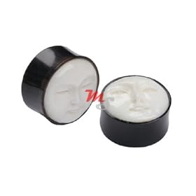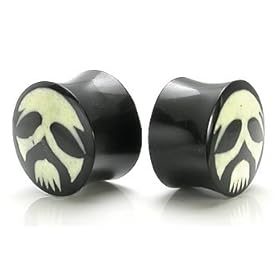SKULL Dust Design Inlay Horn - Wholesale Organic Plugs 10mm - 24mm - Price Per 1- 11/16"~18mm: Jewelry