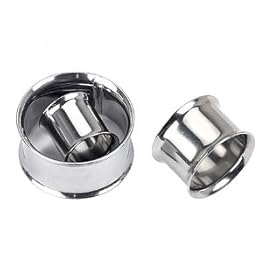 Pair (2) Steel Double Flare Ear Plugs Hollow Tunnels Gauges- 7/8" 22MM: Jewelry