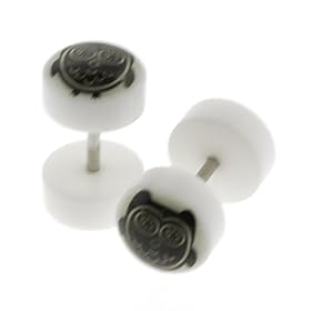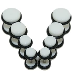 White Fake Cheaters Illusion Ear Plugs - Look 00G(10mm) Large, Stem 16G(1.2mm), One (1) Pair): Jewelry