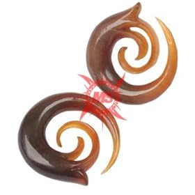 Red Spiral with Dots Inlayed on Organic Horn Plug 6g - 1 1/4" - Price Per 1 11/16"~18mm: Jewelry