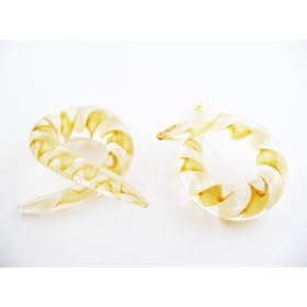Pair Gold Ribbon Pyrex Glass Twists 00g 00 gauge 10mm: Jewelry