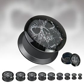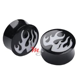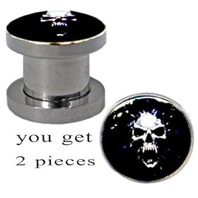 size 15/16" (24MM) Surgical Steel 316L Flesh Tunnel - you get ONE PAIR - Hell fire Skull - different sizes available - choose from the drop down menu: GlitZ JewelZ: Jewelry