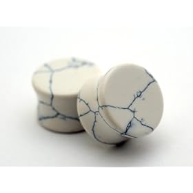 White Marble Fake Cheaters Illusion Ear Plugs - Look 0G (8mm), Stem 16G (1.2mm), One (1) Pair: Jewelry