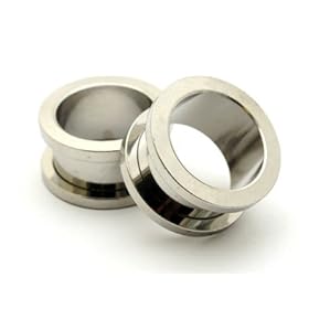 316L Surgical Stainless Steel Screw Fit Flesh Tunnels - 14G (1.6mm) - Sold as a Pair - (Sizes Available from 16G - 2"): Jewelry