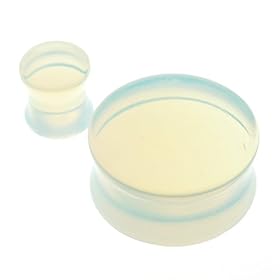 Solid Argenon (Opalite) Semi Precious Stone Saddle Plug - 00G (10mm) - Sold as a Pair: Jewelry