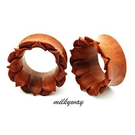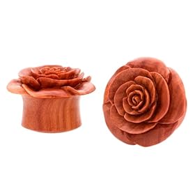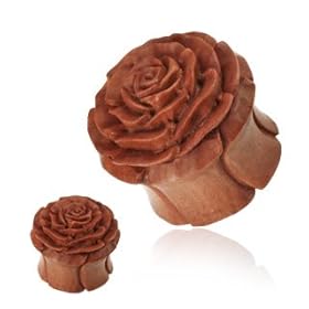 1/2"(12.5mm) - Pair of Organic Areng Wood Chocolate Rose Plugs: UrbanStar: Jewelry