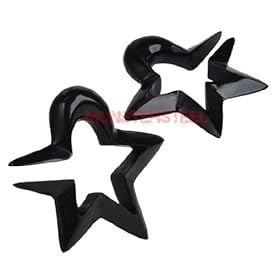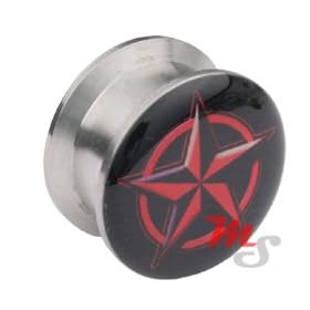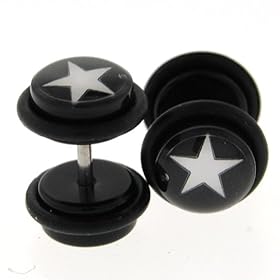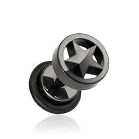 316L Surgical Steel Over Black Titanium Anodized IP Fake Plug with Star Loop Top - 16G - 8mm - Sold as a Pair: Jewelry