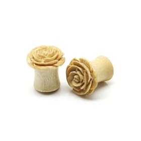 Urban Star Organic Hand Carved Wood White Rosebud Flower Ear Plug Gauges ~ 7/16" ~ 11mm ~ Sold as a Pair: Jewelry