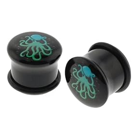 Black Acrylic Octopus Logo Single Flare Plugs with O Ring - 2G - Sold as a Pair: Jewelry