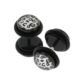 Stainless Steel Fake Plug Earrings - 16g Wire - 00G - Leopard: Jewelry
