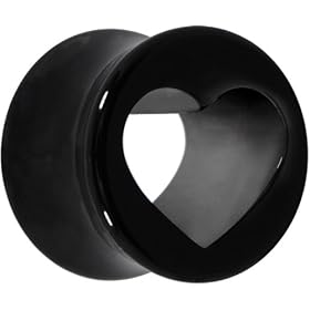1/2" Black Acrylic Hollow Heart Saddle Plug: Jewelry