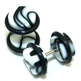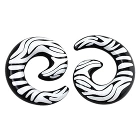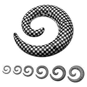 Acrylic Checker Spirals - 00g - Black White - Sold as Pairs: Jewelry