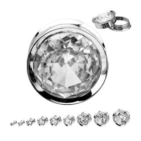 Steel Cz Screw on Tunnels - 1/2 Inch - 12mm - Sold As a Pair: Jewelry