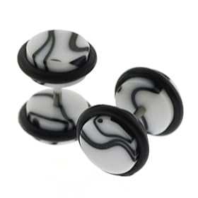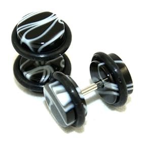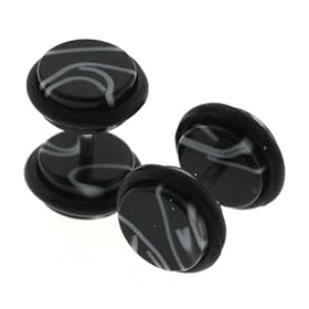 Black Marble Fake Cheaters Illusion Ear Plugs - Look 0G (8mm), Stem 16G (1.2mm), One (1) Pair: Jewelry