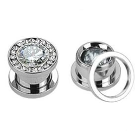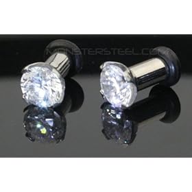 Steel Cz Screw on Tunnels - 0g - 8mm - Sold As a Pair: Jewelry