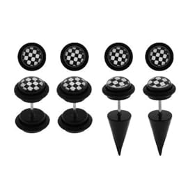 316L Surgical Steel - 18g Ear Wire - Checker Fake Plugs - Multi Packs: Jewelry