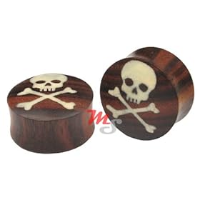 Skull & Crossbones Sono Wood Organic Plugs 19mm 3/4" NR: Jewelry