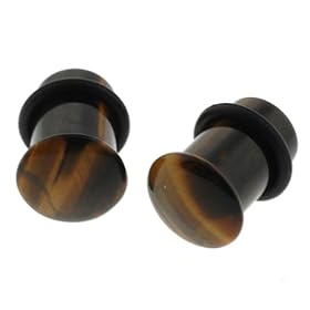 Tiger Eye Stone Single Flare Plugs with O Rings - 00G - Sold as a Pair: Jewelry