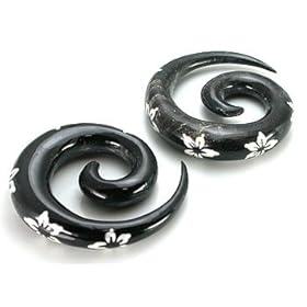8g (3mm) Tribal Floral Organic Horn Ear Plug Gauges - Sold by Pair: Jewelry