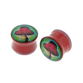 Red Acrylic Single Flared Plugs with Mushroom Logo - 1 Inch (25mm) - Sold as a Pair: Jewelry