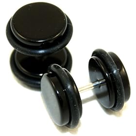 0G = 8mm Black Fake Cheaters Illusion Ear Plugs - 16G = 1.2mm - 1 Pair - Medium Size: Jewelry