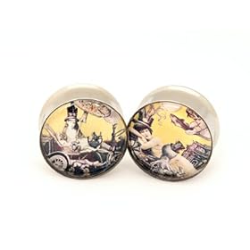 Alice in Wonderland Picture Plugs Style 4 - 1/2 Inch - 12mm - Sold As a Pair: Jewelry