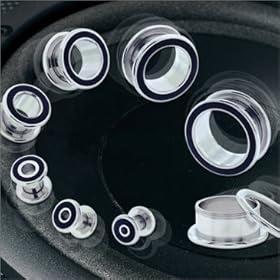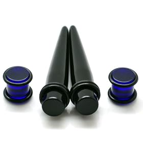00G ~ 10mm ~ Blue Acrylic UV Double O-Ring Gauges Plugs & Black Acrylic Ear Tapers Stretcher Kit ~ Solid as a Pair: Jewelry
