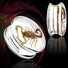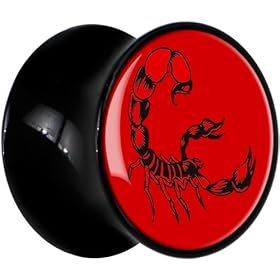 Scorpion Inlay Poly Resin Double Flare Plug - Size: 5/8" (16mm) (Sold as a Pair): Jewelry