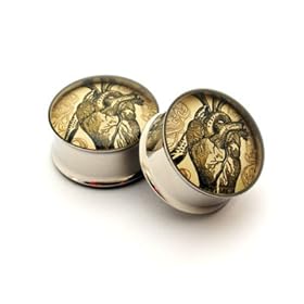 Vintage Heart Picture Plugs - 5/8 Inch - 16mm - Sold As a Pair: Jewelry