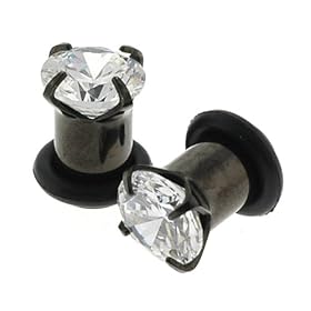 Black Steel Cz Screw on Tunnels - 00g - 10mm - Sold As a Pair: Jewelry