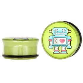 Pair of 5/8" (16mm) Single Flared Robot w/a Heart Green Acrylic Plugs: FreshTrends: Jewelry
