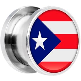 10mm Stainless Steel Puerto Rico Flag Saddle Plug: Jewelry