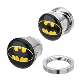 Surgical Steel Batman Logo Externally Threaded Screw Fit Plugs - 7/8" (22mm) - Sold as A Pair: Jewelry