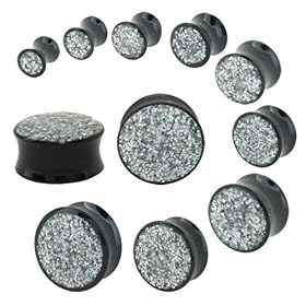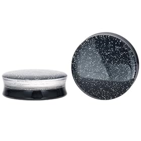 00G (10mm) Black Reversible Acrylic Glitter Double Flared Plugs: FreshTrends: Jewelry