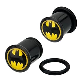 Black Acrylic Batman Logo Single Flare Plug - 00g - Sold as A Pair: Jewelry