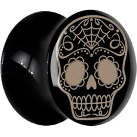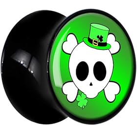 12mm- Black Acrylic St. Patty"s Skull and Crossbones Saddle Plug: Jewelry