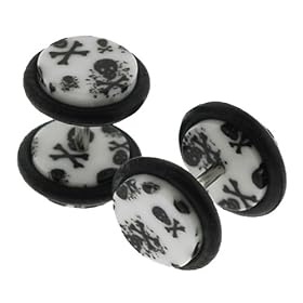 Hand wrapped Acrylic Faux plugs with skulls design - 16g ear wire - 8mm Fakepost - Sold as a set: Jewelry