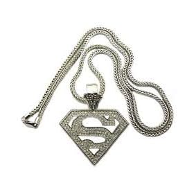 SUPERMAN SILVER ICED PENDANT & FRANCO CHAIN NECKLACE: Toys & Games