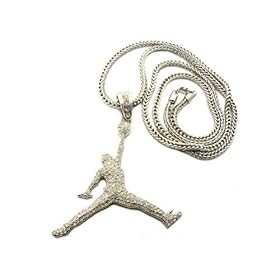 AIR MICHAEL JORDAN SILVER ICED JUMPMAN PENDANT & FRANCO CHAIN NECKLACE: Toys & Games