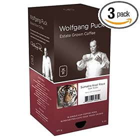 Wolfgang Puck Coffee, Sumatra Kopi Raya, Dark Roast, 18-Count Pods (Pack of 3): Grocery & Gourmet Food