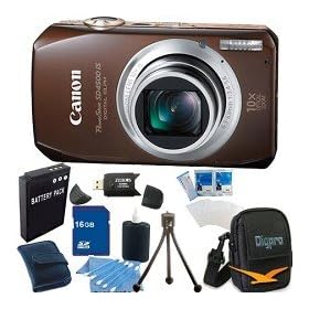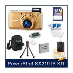 Canon PowerShot SX210 IS Digital Camera (Gold) 4245B001, 14.1 Megapixel, 14x 28-392 mm (IS) Zoom, 3.0" LCD, 720p HD Video with Stereo Sound, DIGIC 4 Image Processor, 16 GB Memory, Reader, Battery, Tripod, DigPro Deluxe Case & More: Camera & Photo